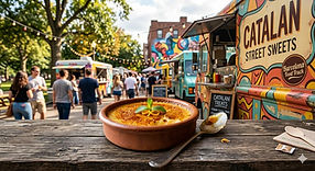 Explore a variety of food trucks featuring authentic Catalan and Mediterranean cuisine